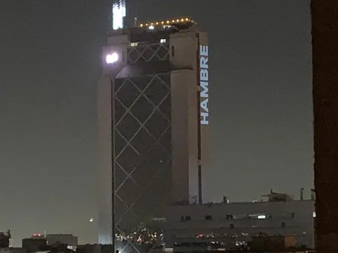 Graves amenazas han recibido artistas que proyectaron las palabras «hambre» y «humanidad» en edificio de Plaza Dignidad