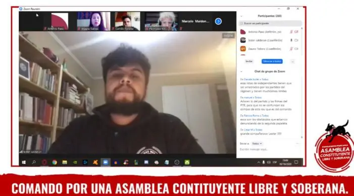 Este sábado 10 de octubre se realizó el Encuentro del Comando por una Asamblea Constituyente Libre y Soberana, donde hubo cerca de 300 personas conectadas, entre dirigentes/as sindicales, trabajadores/as, estudiantes, artistas y organizaciones políticas: Partido de Trabajadores Revolucionarios, Movimiento Anticapitalista, Movimiento Socialista de las y los Trabajadores, Colectivo Amapola Antipatriarca.