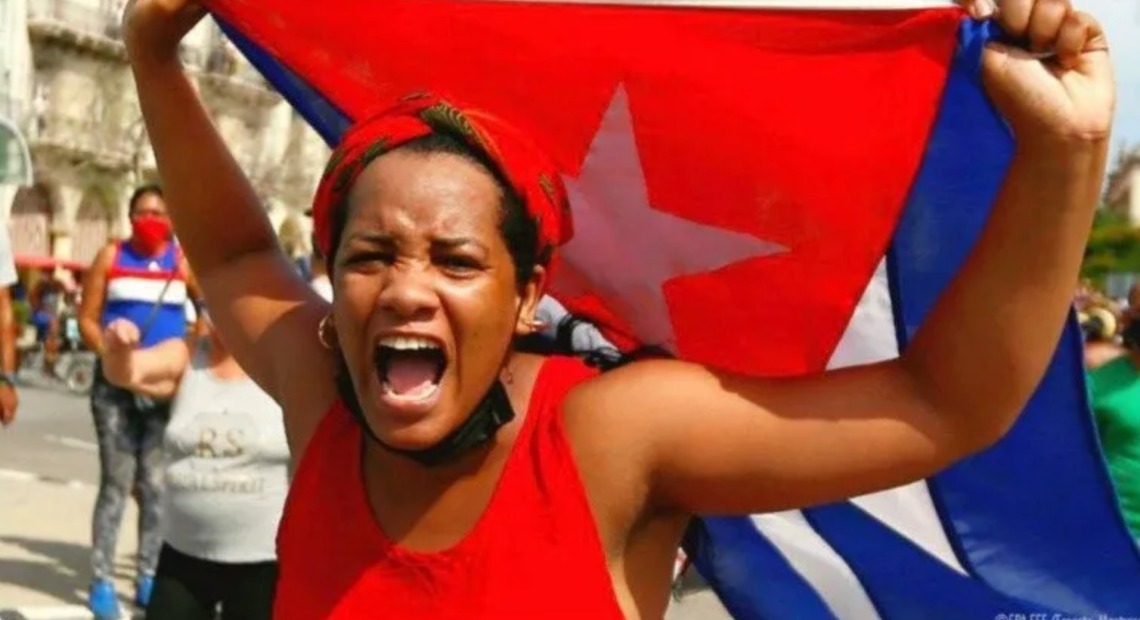 La imagen de una mujer en las manifestaciones del 11 de julio en Cuba fue publicada por medios estadounidenses, como Forbes, y más tarde multiplicada en las redes sociales. Era la representación de las protestas contra el régimen y el gobierno de Miguel Díaz Canel y en pocas horas estaba en todas las plataformas sociales. El fervor que estaba generando en Miami y Latinoamérica estas manifestaciones llegaron a la misma Alta Comisionada de Derechos Humanos de la ONU, Michelle Bachelet, que lanzó un tuit de apoyo a las protestas junto a la imagen de la mujer que levantaba la bandera de Cuba en sus brazos y una intensa pasión expresada en su rostro. Los colores, el encuadre, su gesto, convertían a la mujer en una gran representación de las protestas.