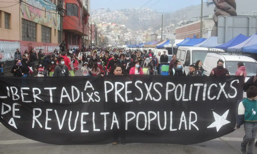 Este domingo en Valparaíso se realizó una movilización exigiendo la libertad de los presos y las presas políticas. Centenares de compañeras y compañeros se reunieron a las 11 horas en la intersección de Avenida Argentina con Avenida Colón, para luego realizar un Pasacalles desde este lugar hasta la Plaza del Pueblo Salvador Allende.