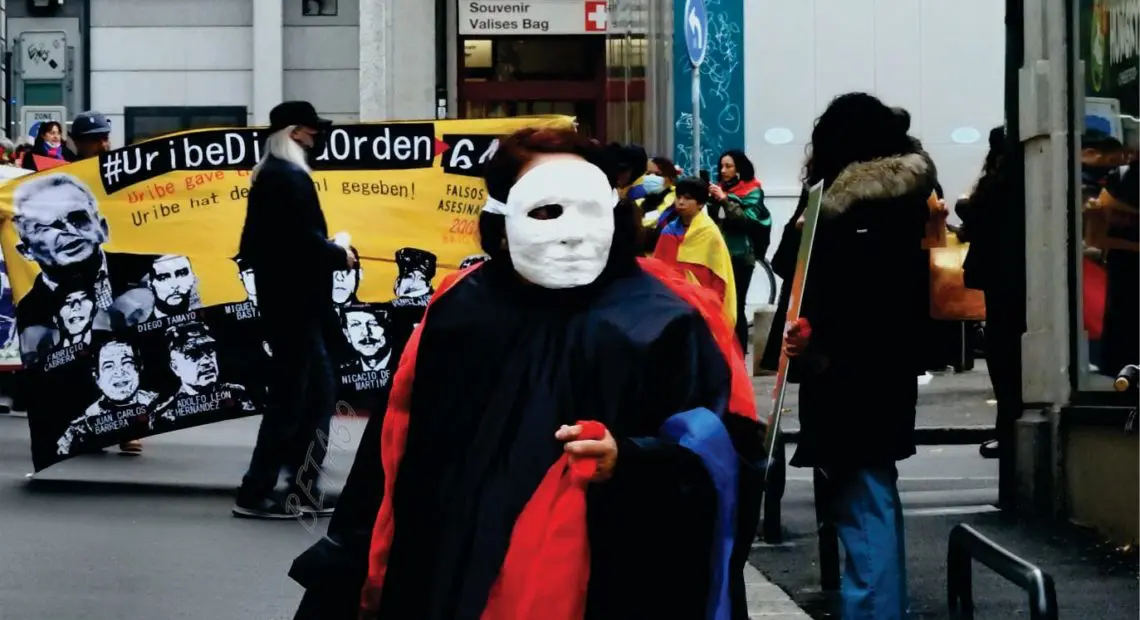 Jhosteh Silva, artista y fotógrafo colombiano en Suiza, presentó durante esta celebración a dos performance: Falsos o-puestos y Juagando con las vidas, que son un retrato de la injusticia que se ha vivido en Colombia desde tiempos anteriores hasta ahora.