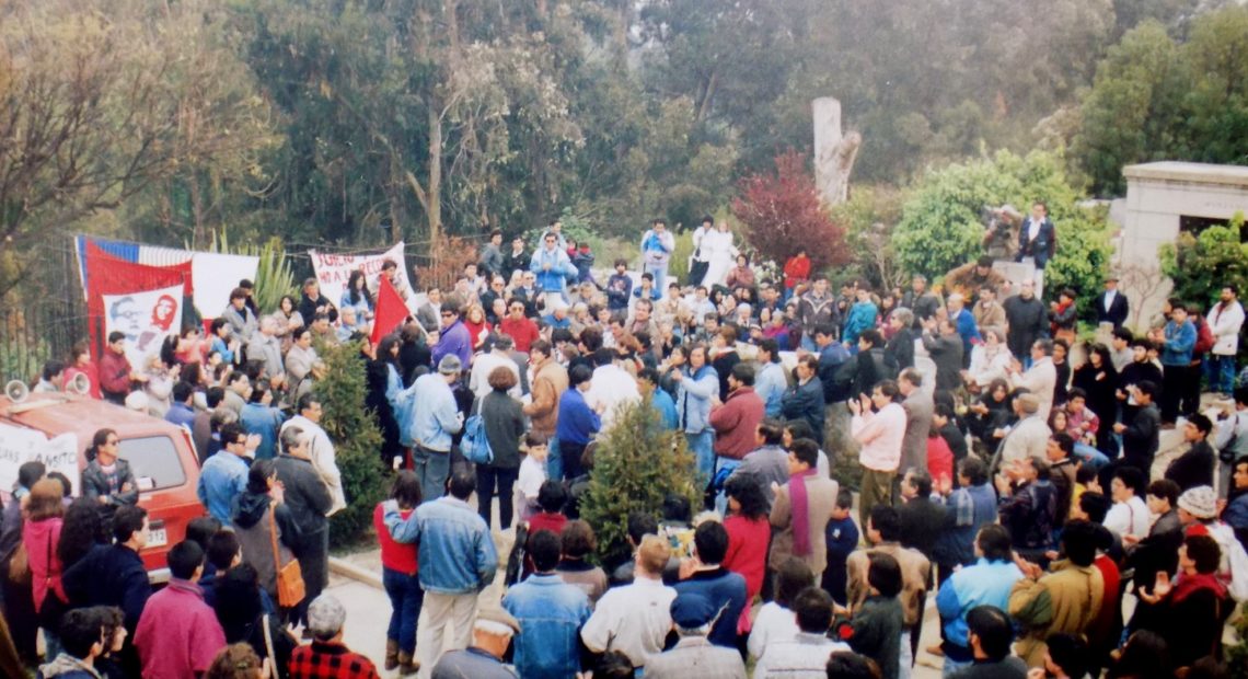 “Claro, después, en los años siguientes, igual íbamos al cementerio los días 11, pero, ¿cuál era la estrategia?, pasar piola y hacer como que uno andaba visitando otras tumbas y te ibas acercando de a poco hasta pasar por el frente de la tumba donde estaba el compañero Allende. Así seguimos yendo siempre al cementerio los 11 de septiembre, pero eran grupitos que se movían y se acercaban y de repente alguien improvisaba algunas palabras, pero nada planificado. Cuando llegaba la repre y había que arrancar, nosotros nos íbamos por una quebrada hacia la población Libertad, saltábamos las panderetas y por ahí arrancábamos para arriba, de vuelta para la Salvador Allende, La gente de esa población era muy solidaria, porque nos avisaban si había pacos o milicos en algún lado.”