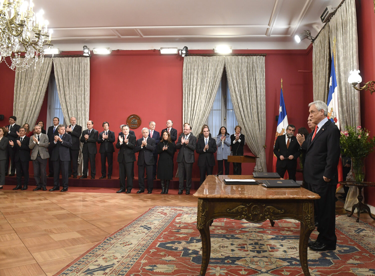 El presidente Sebastián Piñera designó este jueves nuevos ministros en las carteras de Desarrollo Social, Salud, Energía, Obras Públicas, Economía y Relaciones Exteriores. Salen Roberto Ampuero, José Ramón Valente, Susana Jiménez y Emilio Santelices, en tanto Alfredo Moreno pasa de Desarrollo Social a Obras Públicas y Juan Andrés Fontaine pasa a Economía.