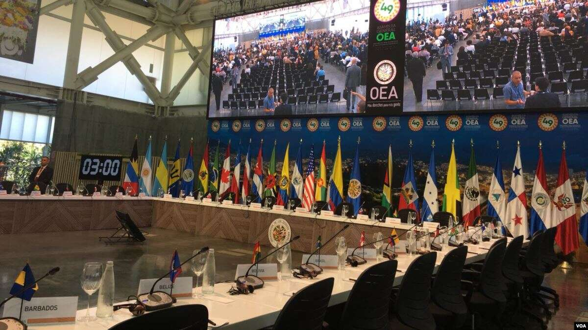 Apenas comenzada la sesión de la Asamblea General en Medellín, Uruguay, México, Bolivia y Nicaragua, sumados a algunos otros países del Caribe, rechazaron la representación de Guaidó, sosteniendo que atropellaba los reglamentos y principios de la OEA. El representante de Uruguay admitió tajantemente que se retiraría de la Asamblea.