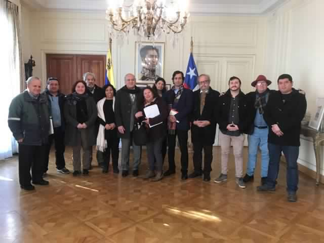 Dirigentes y representantes de partidos. Movimientos y redes territoriales integrantes del Frente Amplio de Chile entregaron declaración y expresaron su solidaridad al embajador de la República Bolivariana de Venezuela en Chile, Arévalo Méndez.