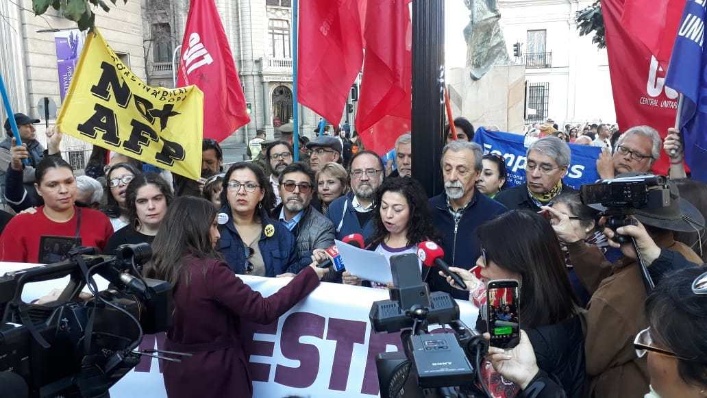 En un punto de prensa realizado en la Plaza de la Constitución ante el Palacio de la Moneda sus principales dirigentes y dirigentas convocaron a un gran protesta Nacional el próximo 5 de septiembre contra el neoliberalismo imperante y por los derechos del pueblo chileno.