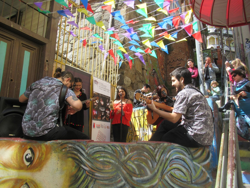 Así, una simple caminata a mediodía – por el cerro Concepción en esta ocasión – germinó mágicamente en una alegre explosión de música y baile, transformando el espacio urbano en un escenario al aire libre, en donde las porteñas y porteños, y también muchos extranjeros y extranjeras, se transformaron en espectadores y actores de esta grata expresión de arte popular.