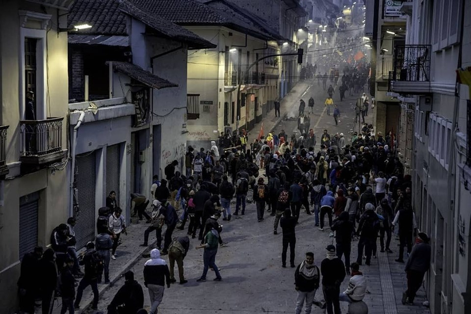 Los cortes de carretera se sucedieron por gran parte de la red vial nacional, llegándose a contabilizar 300 cortes de carreteras al mismo tiempo durante diferentes momentos del pasado sábado y domingo. En paralelo, el Gobierno intentó combinar dos estrategias disímiles. Por un lado, se intensificaba la represión bajo el eufemístico argumento del uso de la fuerza progresivo. Por otro, sus interlocutores buscaban desesperadamente el diálogo con los manifestantes intentando establecer propuestas de compensación a los sectores movilizados (créditos productivos a bajo tipo de interés, apoyo para la adquisición de maquinaria agrícola, reconocimiento de autoridades locales…). Nada sirvió, la dirigencia nacional de Conaie manifestó públicamente que el diálogo con el régimen está totalmente cerrado. “No habrá ningún acercamiento con ningún representante del Estado hasta que se revea el decreto que eleva el precio de los combustibles”, manifestaron de forma homogénea todos sus voceros. El conflicto se agudizó a lo largo y ancho de la geografía nacional, llegándose a retener en diversos territorios indígenas a unidades militares y policiales para posteriormente ser entregadas tras haberse liberado extraoficialmente a civiles detenidos en dichas comunidades. La Conaie, bajo el principio de autodeterminación de los territorios indígenas, también había declarado su estado de excepción, prohibiendo la entrada de infiltrados y grupos armados pertenecientes a los aparatos de seguridad del Estado.