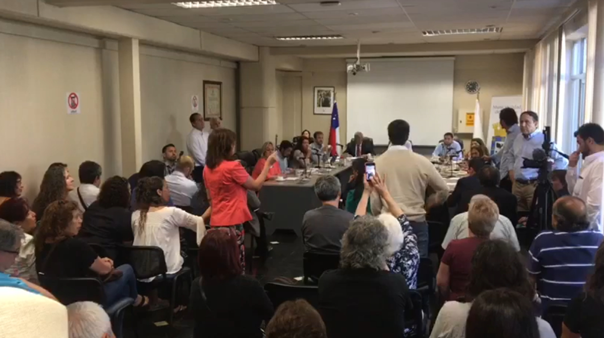 Una tensa reunión del concejo municipal de La Reina tuvo lugar esta mañana tras la presencia de numerosos vecinos en la sala, y centenares afuera, que le exigían al alcalde, José Manuel Palacios (UDI), una respuesta en cuanto si la consulta ciudadana a realizarse el 15 de Diciembre estará adherida a la consulta llamada por la Asociación Chilena de Municipalidades y por tanto exigir que las preguntas realizadas en el plebiscito comunal sigan el orden establecido por la Asociación.