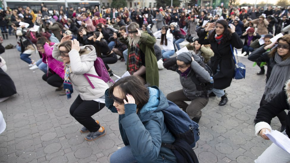 Feministas del mundo protestan con performance chilena “Un violador en tu camino”