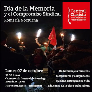 Es el CIUS, con el apoyo entusiasta de la Asociación de Funcionarios del Cementerio General, quien propone realizar una romería nocturna para recordar a nuestros caídos y hoy la fecha la hace suya nuestra Central Clasista.