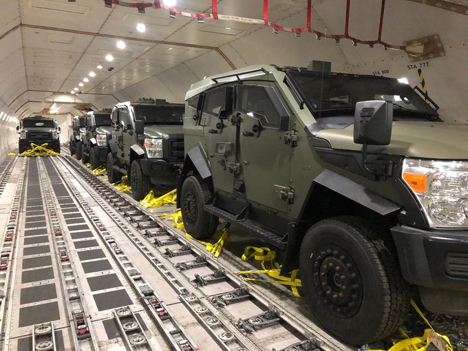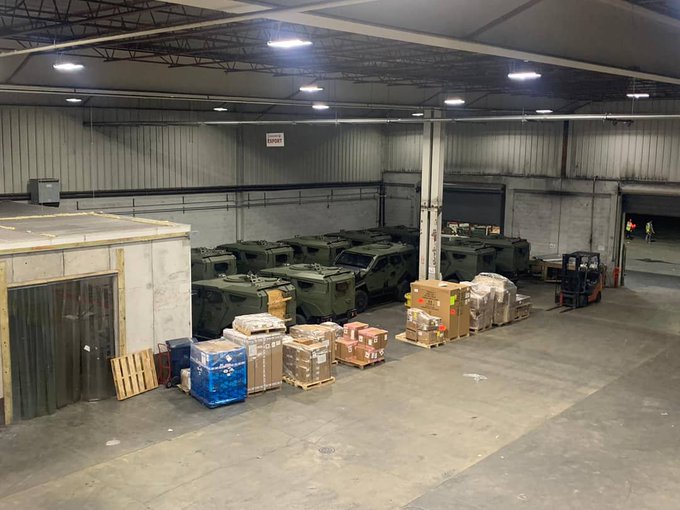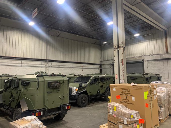 11 carros blindados de marca Sandac y fabricados en Israel. El cargamento de vehículos arribó al país en la madrugada del día 1 de Marzo y se espera la llegada de un número similar de carros lanza-aguas.