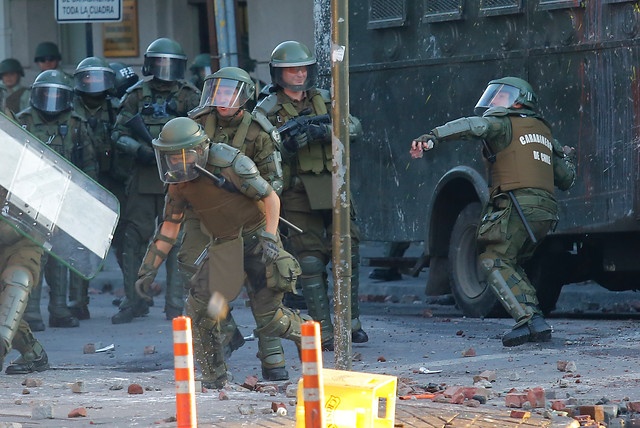La concentración transcurrió en su mayoría de forma pacífica, aunque se dieron choques en los alrededores de la plaza cuando los Carabineros trataban de disuadir la concentración con gases lacrimógenos y camiones lanza-agua y los manifestantes respondían lanzando piedras.