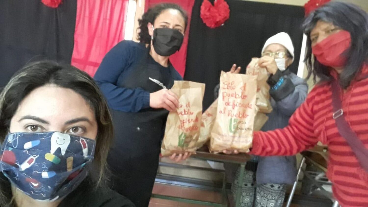 “Actualmente nuestra organización se ha reducido a pocos vecinos de manera presencial, eso no quiere decir que nos organicemos de forma virtual, eso es imposible. Lo que hacemos para cuidar a la mayor cantidad de vecinos y sin que la organización deje de funcionar es que quienes pueden organizarse de manera presencial no han perdido la regularidad de nuestras reuniones y acciones, y los demás vecinos aportan desde sus casas en acciones tan importantes como confeccionar mascarillas, pintar alguna propaganda, donar alguna mercadería, informarnos de la situación de los vecinos (en el caso de los encargados por block), etc. Hemos tratado de que esta red de solidaridad popular siga organizada sorteando las condiciones que nos genera la necesidad de quedarse en casa, para cuidar nuestras vidas para las batallas futuras.”