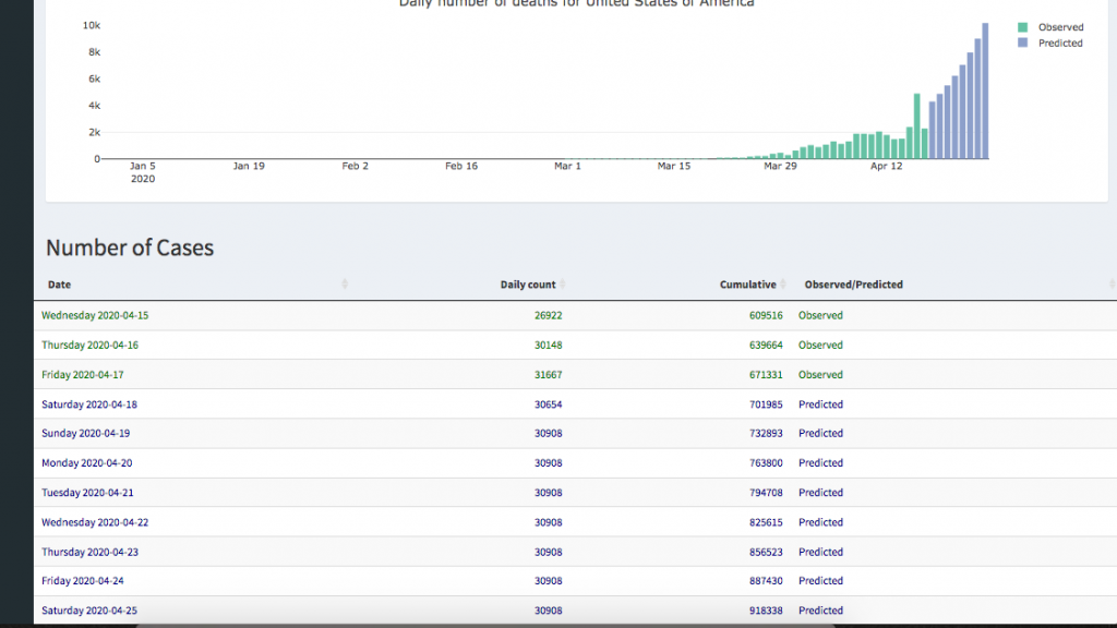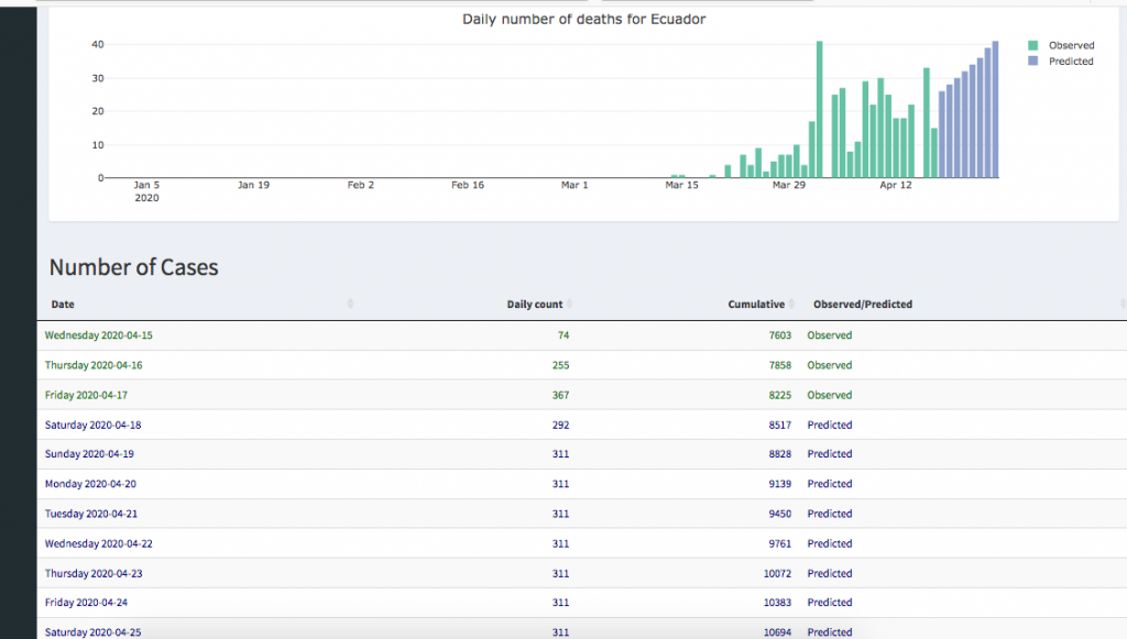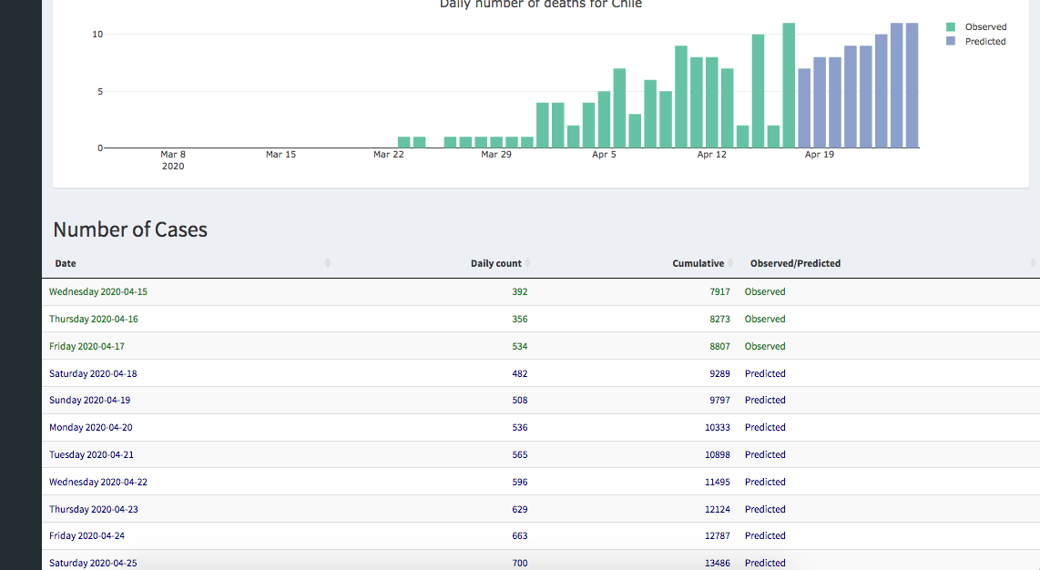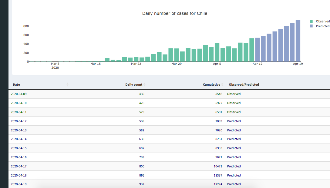 Panel diario interactivo #COVID19 Pronóstico epidémico para casos confirmados y muertes a una semana vista (205 países y territorios). Realizado por el Instituto de Salud Global de la Universidad de Ginebra y el Swiss Data Science Center.