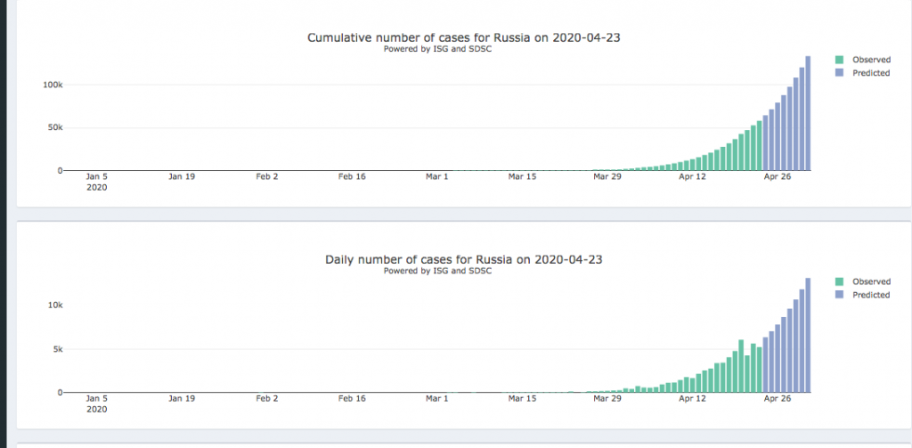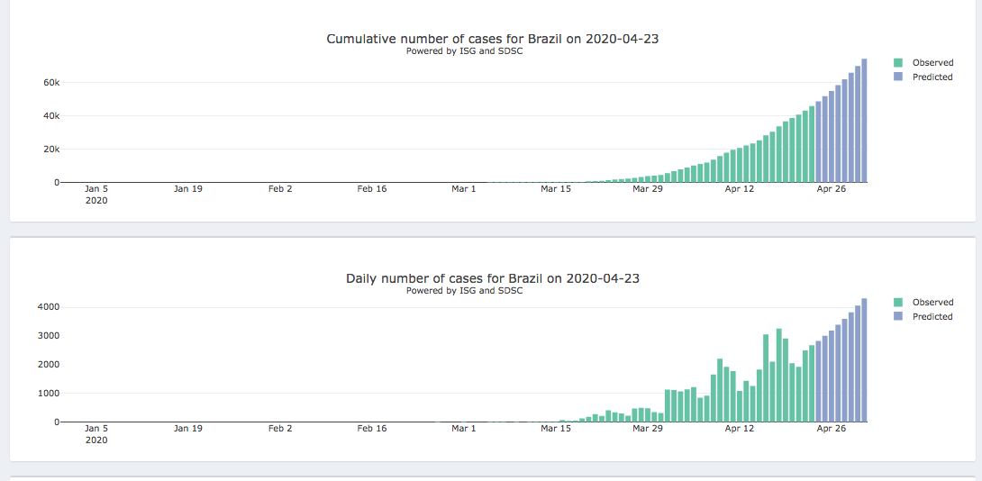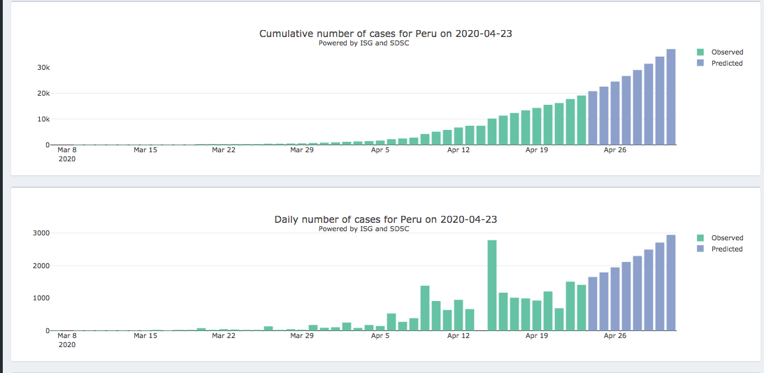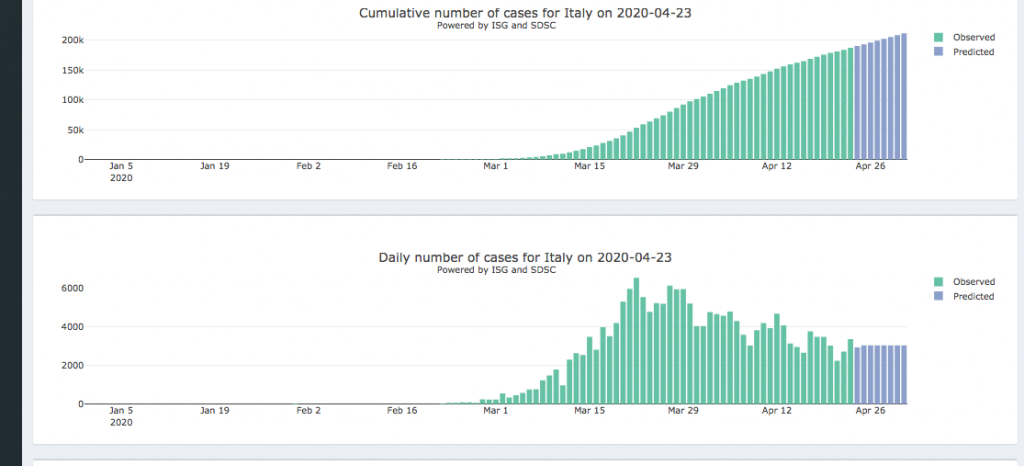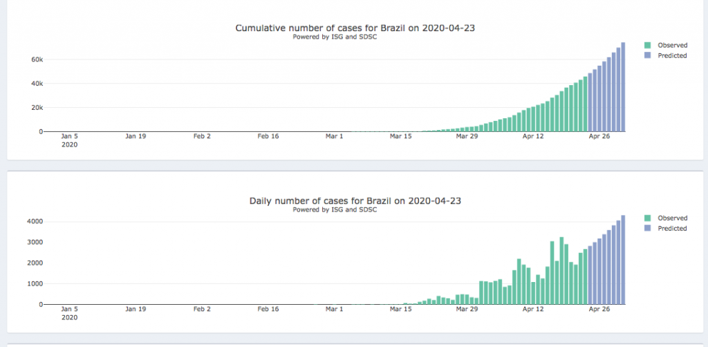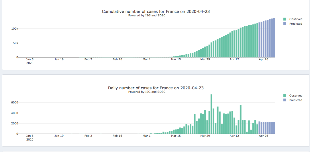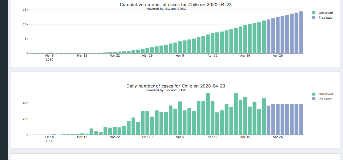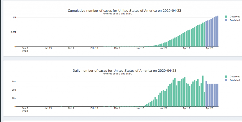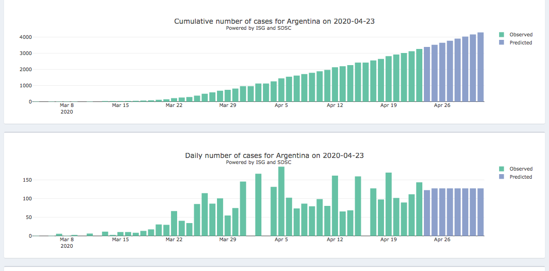 24 al 1 de mayo – Panel diario interactivo #COVID19 Pronóstico epidémico para casos notificados confirmados y muertes (205 países y territorios). Realizado por el Instituto de Salud Global de la Universidad de Ginebra y el Swiss Data Science Center.