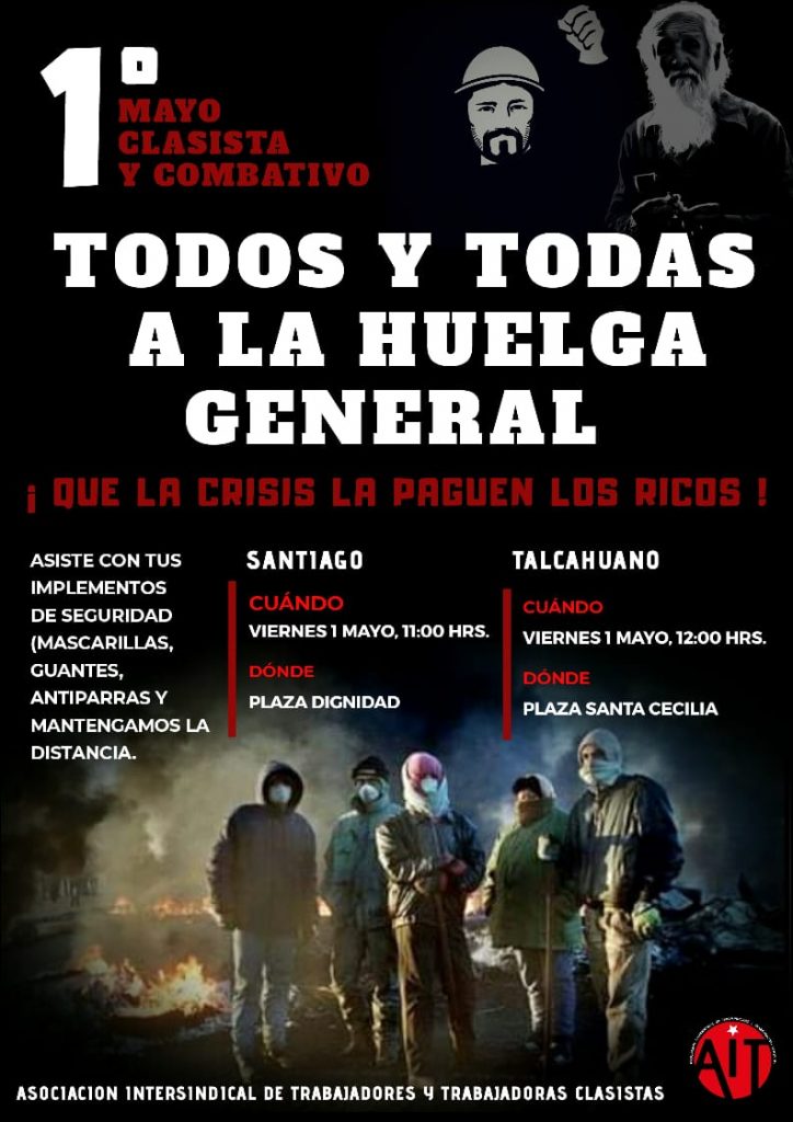 En Santiago este viernes 1° de mayo a las 11 de la mañana en Plaza Dignidad, y en Talcahuano en Plaza Santa Cecilia a las 12 del día.