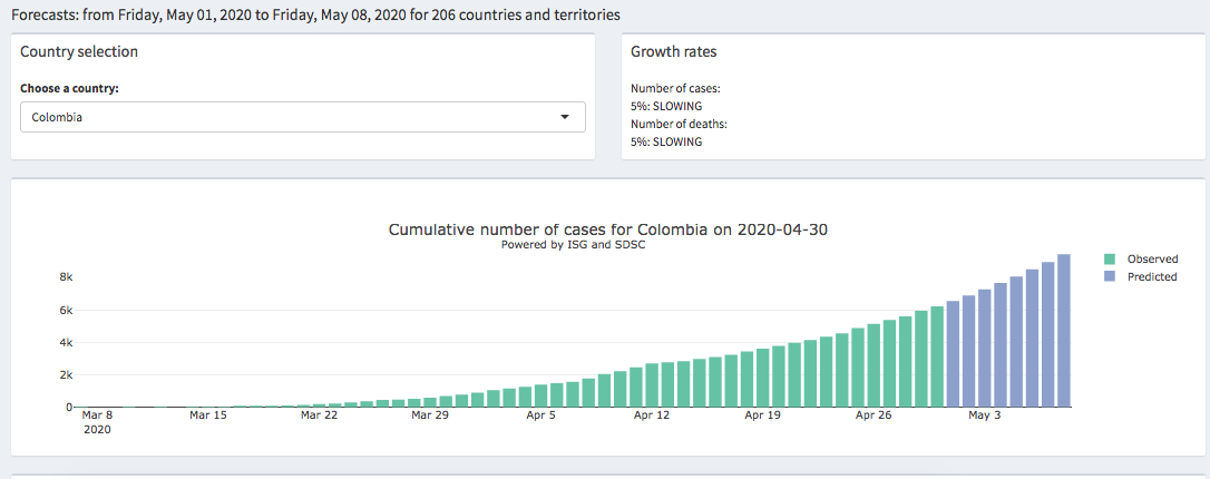 01 al 8 de mayo – Panel diario interactivo #COVID19 Pronóstico epidémico para casos notificados confirmados y muertes (205 países y territorios). Realizado por el Instituto de Salud Global de la Universidad de Ginebra y el Swiss Science Data Center.