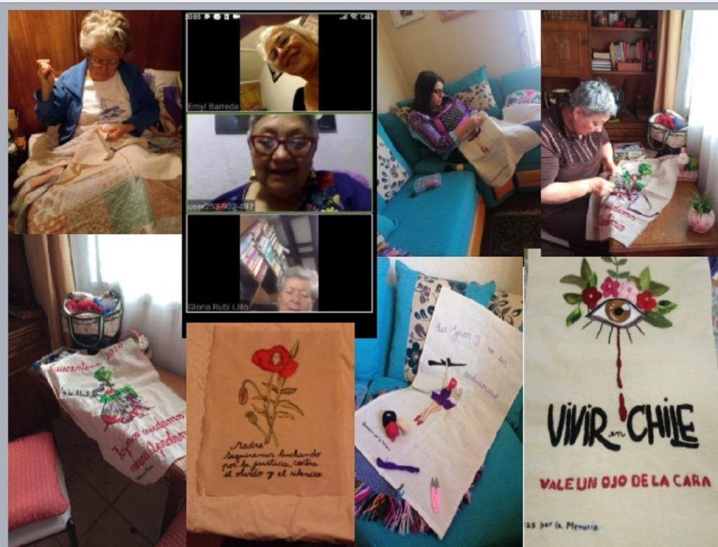 “Sí, estamos siempre trabajando con ellos y en contacto en video conferencia. Ahora estábamos conversando de la difícil situación en que el país está y va a quedar más empobrecido de lo que estaba, entonces estamos preocupados de cómo participar en esto, cómo involucrarnos en algún tipo de ayuda para la tercera edad, de las personas que están sin trabajo, como hacíamos en el tiempo de la dictadura con las ollas comunes o los comedores comunitarios en las poblaciones. Un trabajo de solidaridad, porque aparte de bordar tenemos el deber moral de “salir a la calle” de otra forma.”