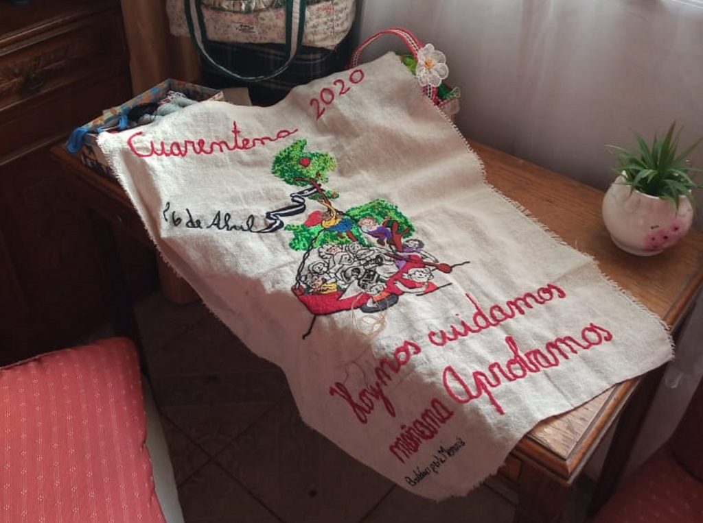 La emergencia sanitaria ha provocado un paréntesis en la lucha popular directa, pero las organizaciones han buscado, creativamente, maneras para continuar funcionando. Las compañeras Bordadoras siguen activas y trabajando colectivamente pese al confinamiento y al necesario aislamiento social provocado por el coronavirus.