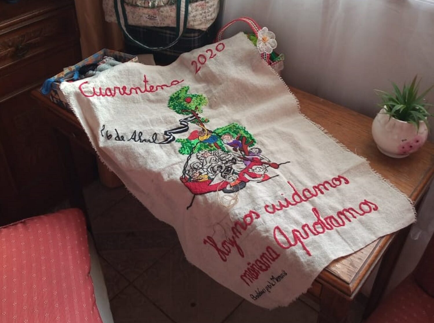 El aislamiento social ha permitido acercarnos de una manera diferente. Como bordadoras usamos las distintas plataformas para comunicarnos, estamos presentes y hablamos a diario. Para mí es un ejemplo como manejan el aislamiento las bordadoras más grandes, eso me motiva, hago cosas, leo, tejo, bordo, pienso en nuevos bordados.