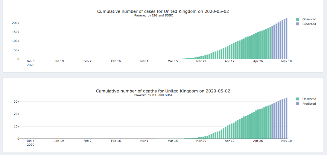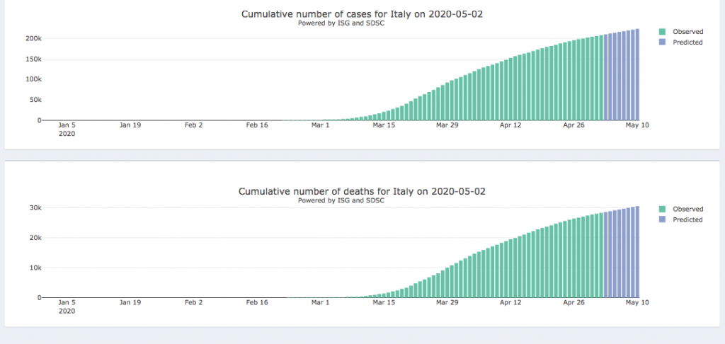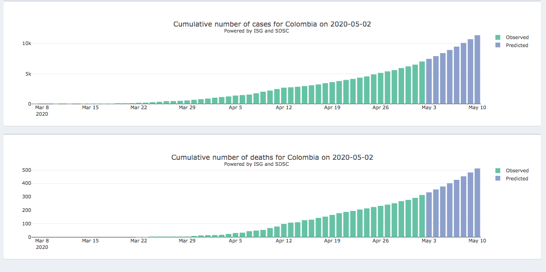 03 al 10 de mayo – Panel diario interactivo #COVID19 Pronóstico epidémico para casos notificados confirmados y muertes (205 países y territorios). Realizado por el Instituto de Salud Global de la Universidad de Ginebra y el Swiss Data Science Center.