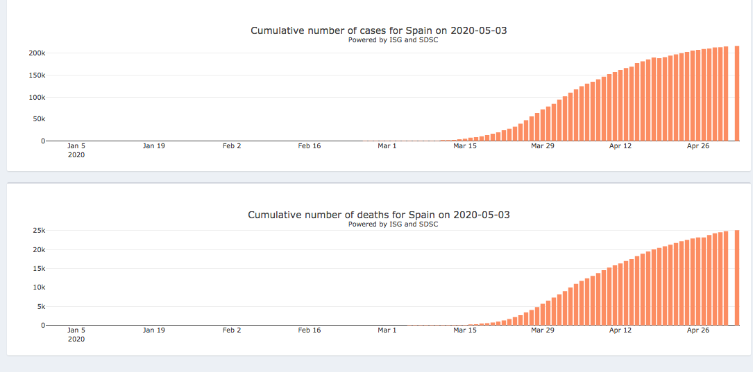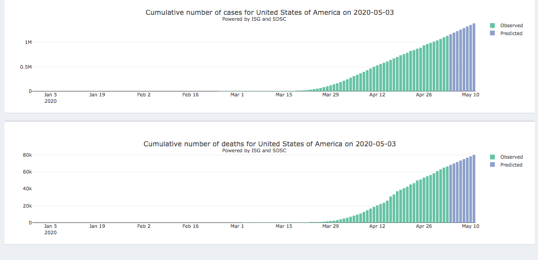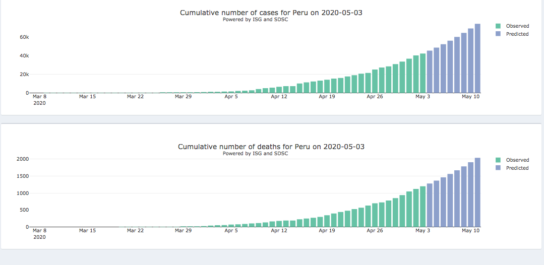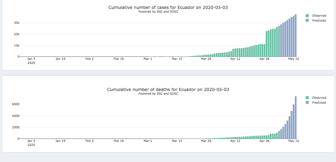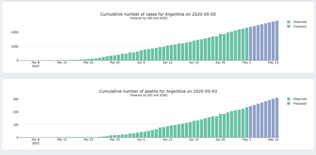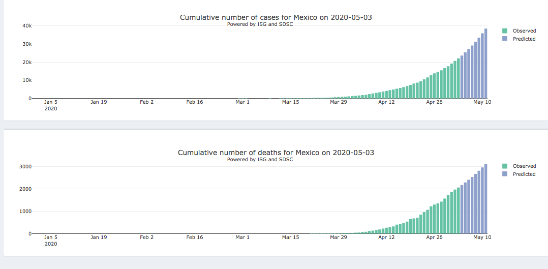 04 al 11 de mayo – Panel diario interactivo #COVID19 Pronóstico epidémico para casos notificados confirmados y muertes (206 países y territorios). Realizado por el Instituto de Salud Global de la Universidad de Ginebra y el Swiss Data Science Center.