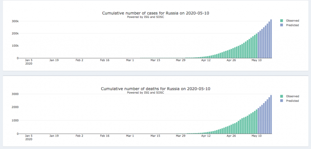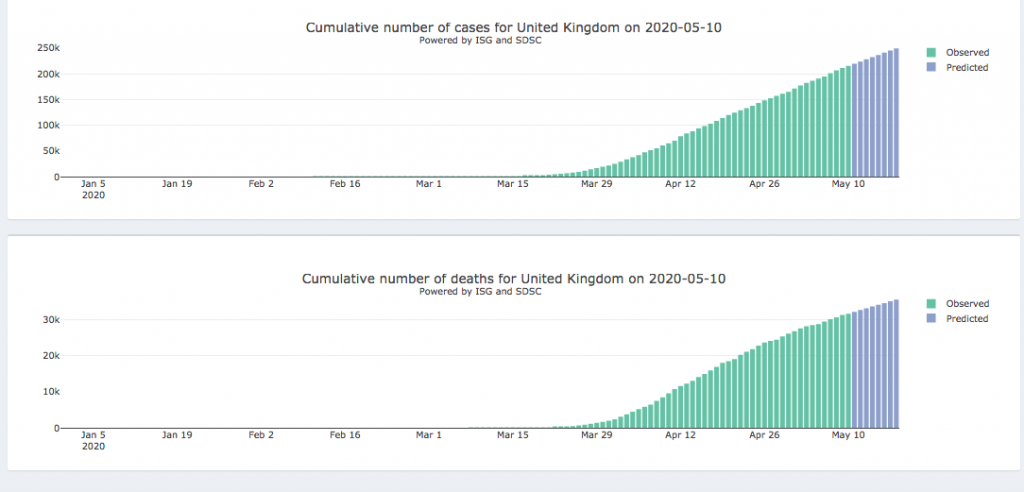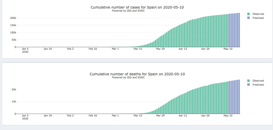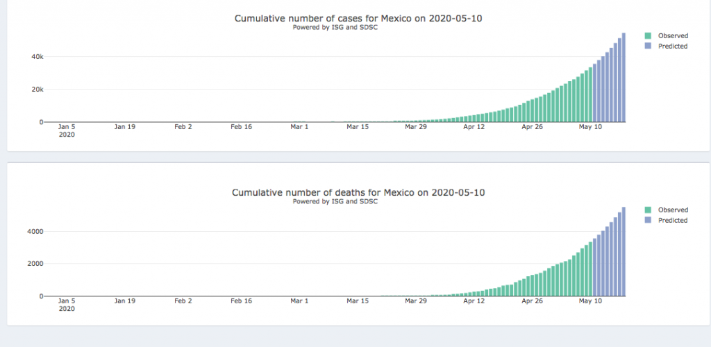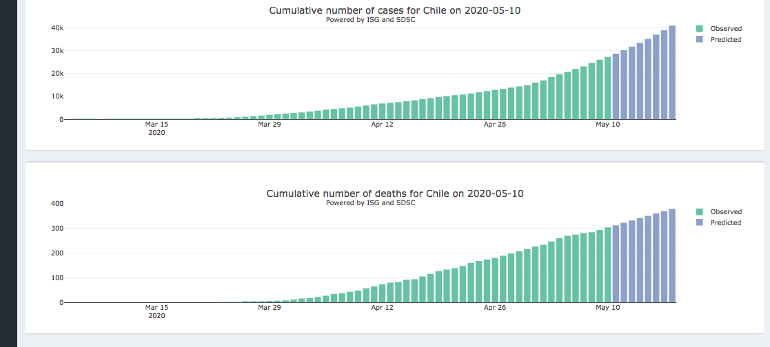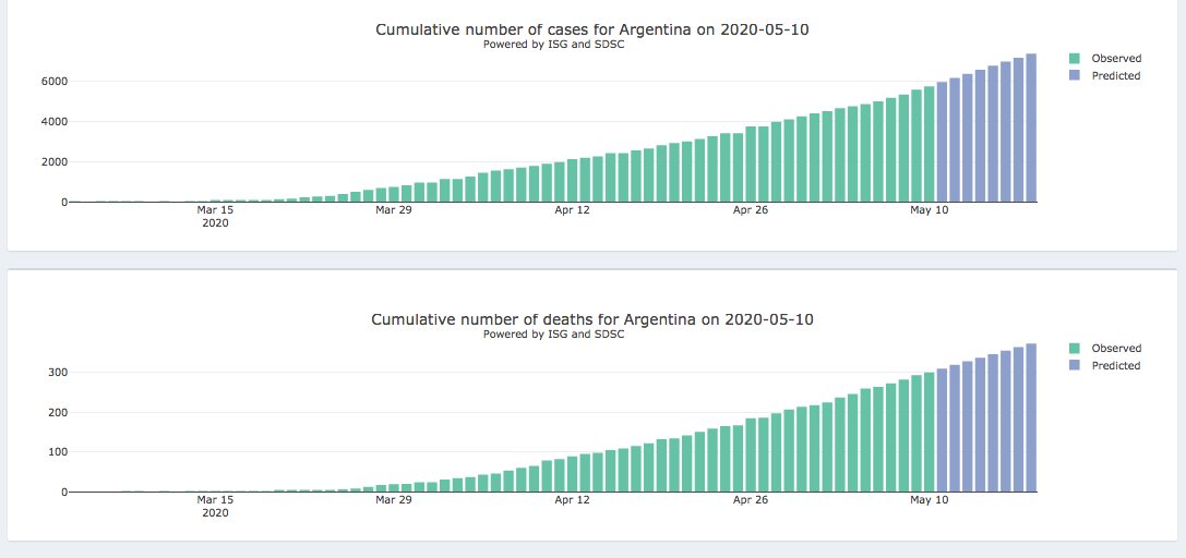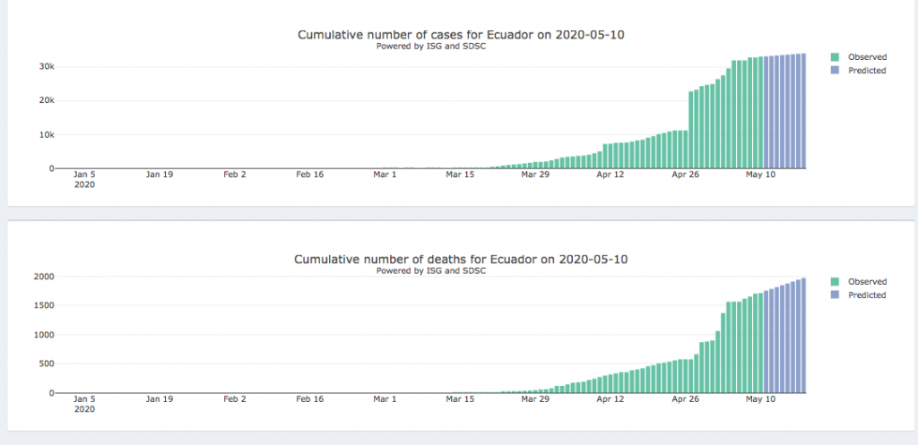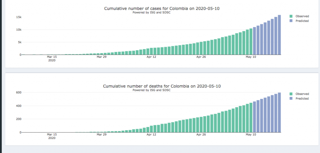 10 al 17 de mayo – Panel diario interactivo #COVID19 Pronóstico epidémico para casos notificados confirmados y muertes (208 países y territorios). Realizado por el Instituto de Salud Global de la Universidad de Ginebra y el Swiss Data Science Center.