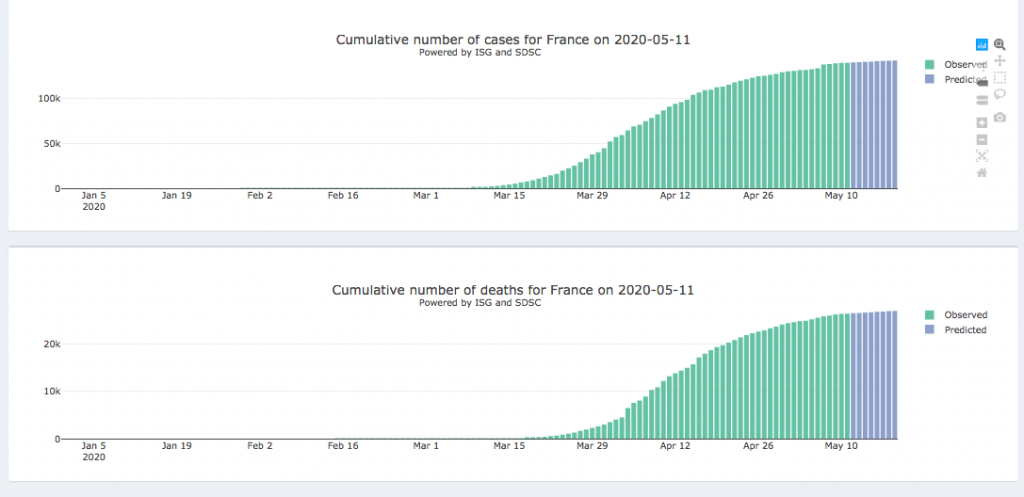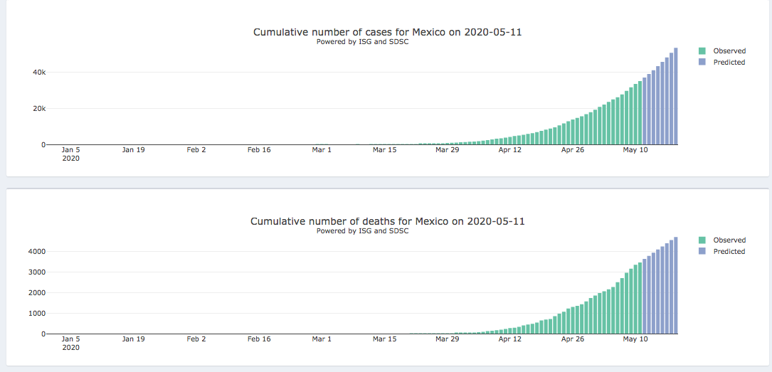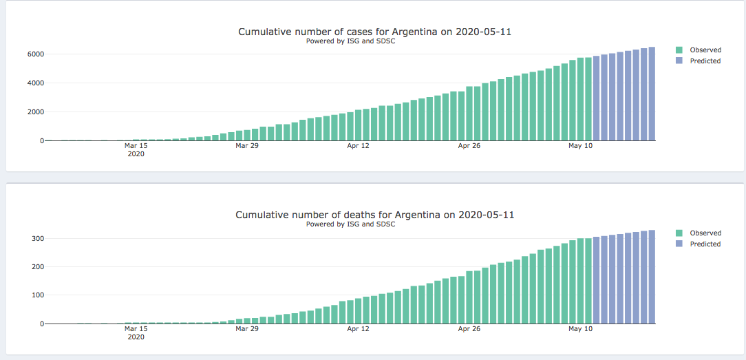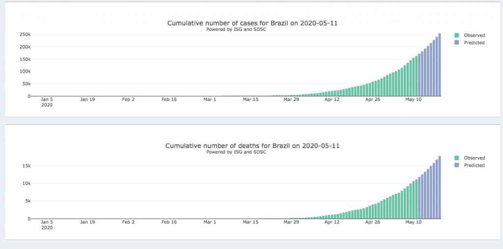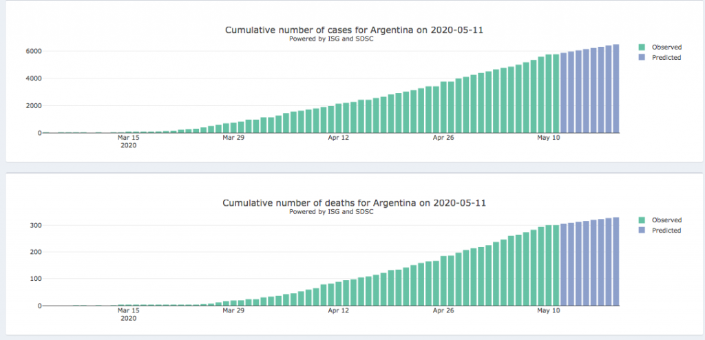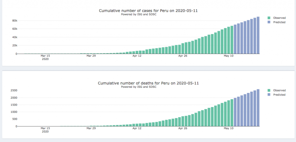 11 al 18 de mayo – Panel diario interactivo #COVID19 Pronóstico epidémico para casos notificados confirmados y muertes (208 países y territorios). Realizado por el Instituto de Salud Global de la Universidad de Ginebra y el Swiss Data Science Center
