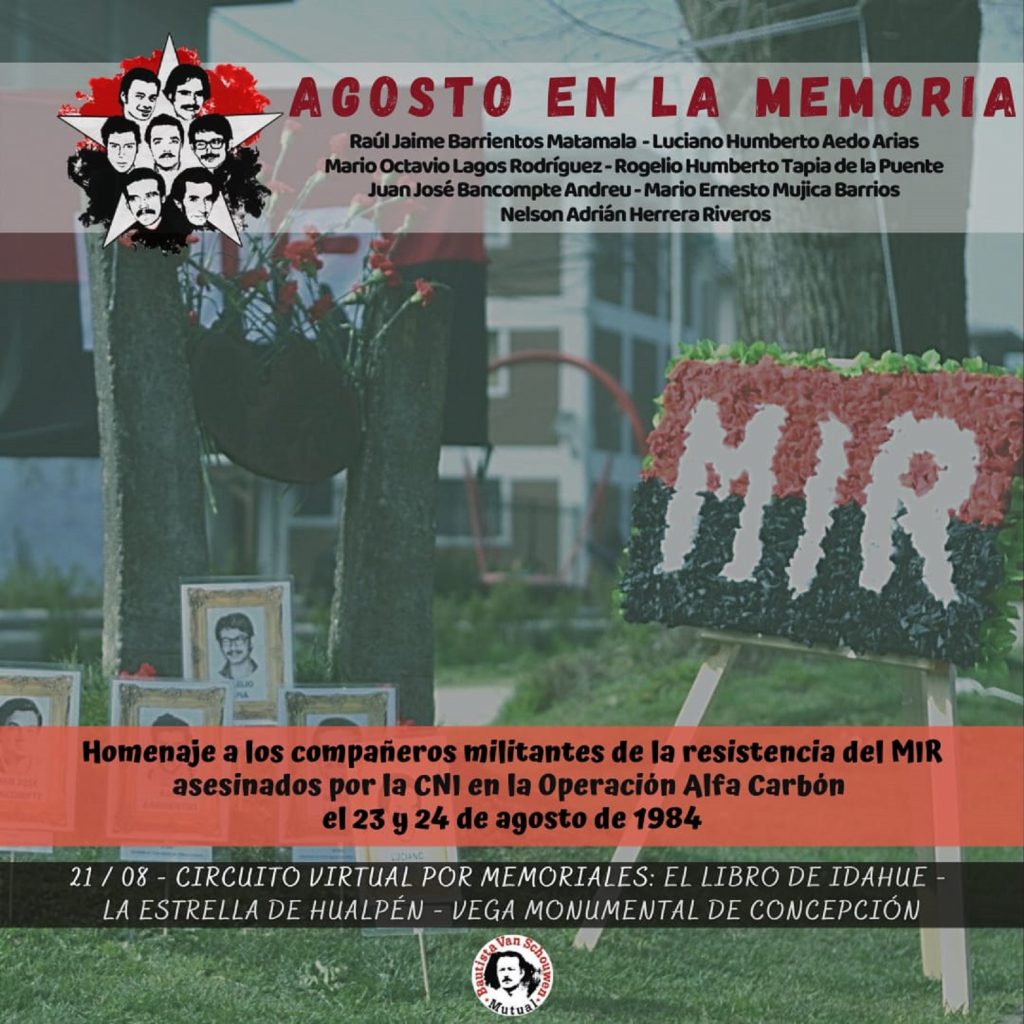 El 23 y 24 de agosto de1984 la dictadura volvió a teñir de sangre revolucionaria la zona sur del país. Siete compañeros militantes y dirigentes del MIR fueron asesinados entre la Octava y la Décima región. La vida de 7 luchadores sociales, miembros de la Resistencia, fueron troncadas mediante asesinatos arteros y cobardes. Luego de cometidos los crímenes, como era costumbre de la dictadura y los medios, los hechos fueron presentados como “muertes en enfrentamiento”.