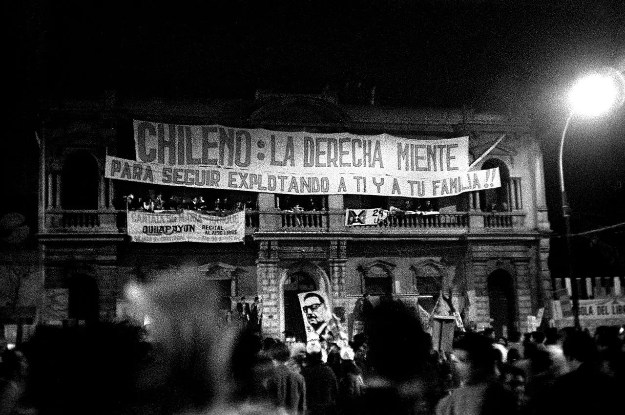 Luego el triunfo del pueblo…Mucha alegría, no perdíamos la seriedad y rigor, pero por dentro, gritábamos y cantábamos…Una vieja esperanza se realizaba…Luego llegó Gladys, con Checho Weibel y Cáceres….Muy contentos ..destaparon un par de botellas de espumante que traían. Nos formamos quienes no estábamos en turno y saludamos muy marciales a la Compañera Secretaria…todo muy bien…Ella ordenó prender luces y abrir ventanas…e hizo una pequeña arenga…Sería y Alegre, como era Gladys…Estábamos en eso , cuando nos enteramos que venía una columna de blindados hacia el centro, al mando de Camilo Valenzuela, general golpista…Todo se funó, apagón general, Gladys muy seria, se va…alarma total, turnos redoblados…salieron unos fierros largos que nunca había visto, equipo de primera !!! Y cascos de acero y máscaras antigas…Todo muy serio y profesional…lo cual aumentaba mi temor…yo que pensaba que el PC era amarillento…me tiritaban las piernas mientras subía al techo, con otros compas, con otras cajitas misteriosas que nunca supe que contenían…largos momentos, todo muy tenso, afuera no se escuchaba nada…en eso desde Vicuña Mackenna comienzan a pasar muchas personas, con banderas, gritando…era el triunfo del pueblo…de los tanques, nunca más se supo…Luego los jefes nos enviaron a la Alameda, en grupos para » ver y controlar», creo que fue un modo generoso de hacernos participar de ese momento maravilloso a los más chicos…o para desarmar lo anterior…Frente a la Fech, la gente gritab y reía…Nos hicieron entrar allí y cuidar el local… Allí después llegó Allende. Había mucha gente, casi no cabíamos y todos muy serios, los del equipo AD…Fue una noche hermosa para todxs.