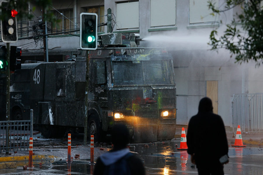 Avanzada la tarde fueron aumentando el número de manifestantes y la represión de los Carabineros, con profusión de bombas lacrimógenas y potentes chorros de agua en constantes choques que se prolongaron hasta bien entrada la noche.