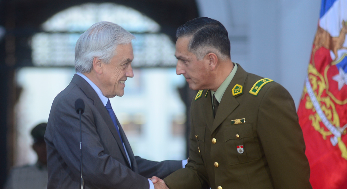 Su historia comienza, aparentemente, con la caída del general Bruno Villalobos y su directa participación en el escándalo del fraude de 28 mil millones de pesos[8] al interior de la institución; un sujeto con tales antecedentes no podía seguir al mando de aquella. No debe sorprender que, instalado ya en la presidencia de la nación, nombrara Sebastián Piñera en su reemplazo al general Hermes Soto quien, a su vez, se vio involucrado en el escándalo de la falsificación de pruebas en el asesinato del dirigente mapuche Camilo Catrillanca. Soto debía salir. Piñera le pidió su renuncia, a lo que el general se negó. Piñera debió separarlo de su cargo. El problema era a quién colocar en su reemplazo.