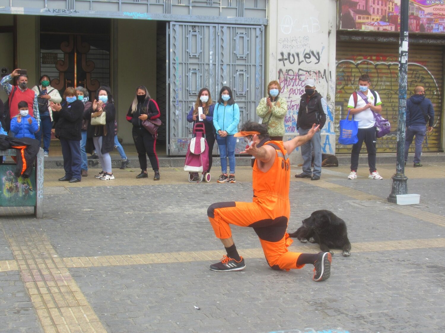 Casualmente tuve la oportunidad de presenciar un par de intervenciones de arte popular callejero realizadas por el Mimo Tuga, tanto en el sector de la Plaza Echaurren como en la plaza Aníbal Pinto, actuaciones que fueron celebradas y aplaudidas con entusiasmo por quienes se encontraban en dichos sectores, ya que este artista popular es muy querido por las porteñas y porteños.
