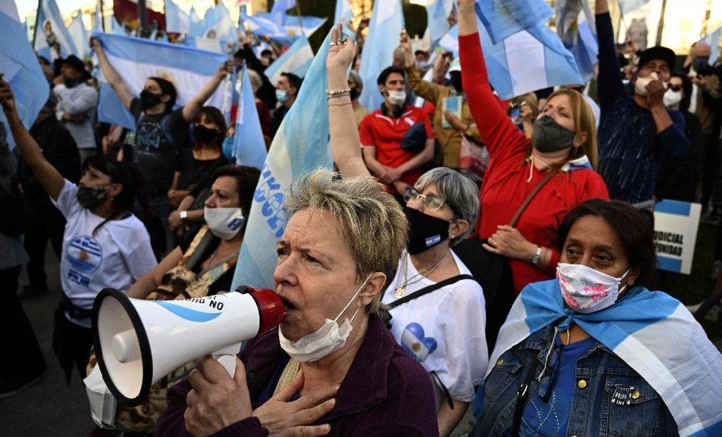 El presidente, Alberto Fernández, consideró que rodear la vivienda de la también ex presidenta Fernández de Kirchner (2007-2015) “solo fomenta la grieta y daña la convivencia democrática” y agregó que “disentir con un gobierno es parte de la democracia, movilizarse, aun con el riesgo que implica en una pandemia, también, pero promover una convocatoria a una protesta en el domicilio de una persona” resulta una afrenta para la democracia.