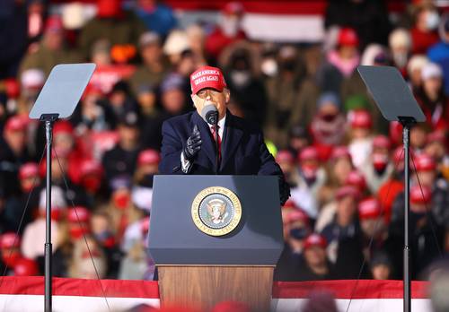 ▲ El presidente republicano Donald Trump en uno de sus últimos discursos de campaña, ayer en Michigan.