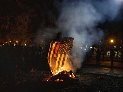 Una suerte de ira irrumpió anoche cuando manifestantes armados en Portland (Oregon) quemaron banderas y desfilaron, sin violencia en medio de la confusión poselectoral después de la auto proclamación de su reelección por el mismo republicano Donald Trump ante el demócrata Joe Biden, en un discurso designado como provocador y fuera de los protocolos democráticos.