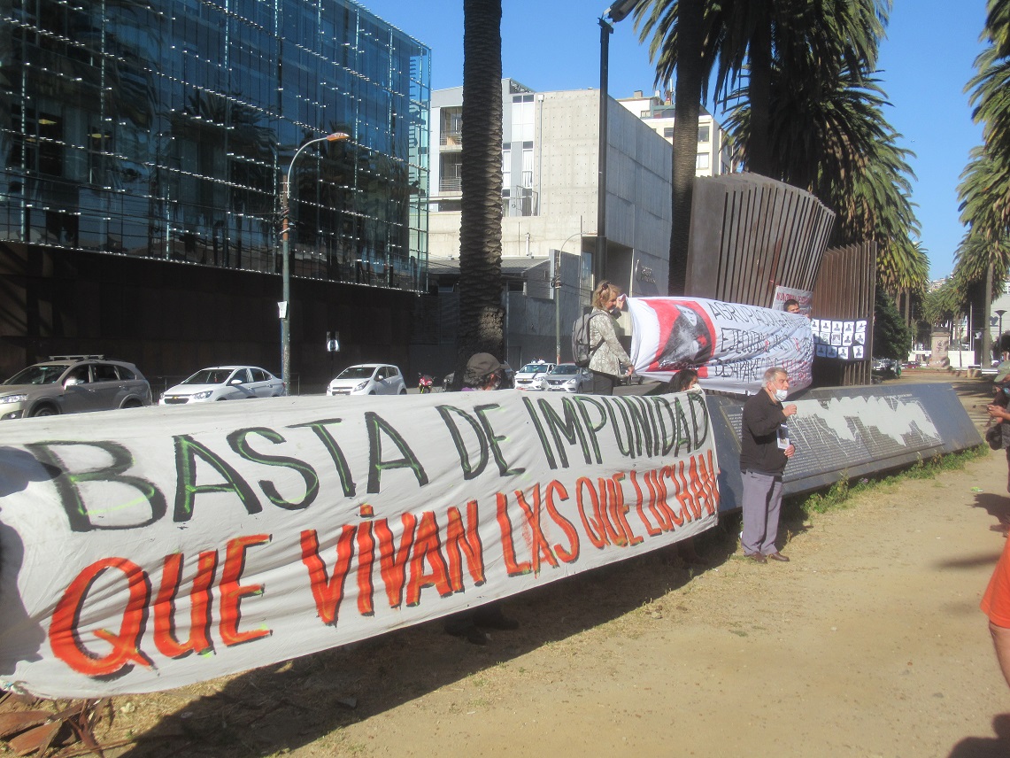 “El fascismo de la región de Valparaíso se hace presente manchando nuevamente el Memorial, que tantas veces ha sido dañado, lo que constituye una falta de respeto a los nombres de nuestros familiares (… ) es un dolor profundo el que nos causan, pero no por eso nos paralizan, me sumo a las palabras de Eduardo Morris y de Gladys diciendo que no nos vamos a cansar, que vamos a estar acá, las generaciones se van renovando, las voces se multiplican y la memoria se mantiene. El Estado chileno es el terrorista y responsable de los asesinatos de nuestros compañeros y familiares. Cuando pedimos Verdad y Justicia no es solo por los ejecutadxs y lxs desaparecidxs en dictadura, sino también de los ejecutadxs del presente y a las víctimas de las violaciones a los Derechos Humanos del presente (…) seguimos movilizándonos junto a toda esta gente que ha impulsado estas luchas todos estos años. Rendimos un homenaje no solo a quienes fueron asesinadas, torturadas y detenidas, sino también a quienes murieron luchando por Justicia y Verdad (…) el Memorial es un objeto, es la obra de un artista, pero en el corazón de él hay nombres de hombres y mujeres que lucharon por un mundo digno, por un mundo solidario….”