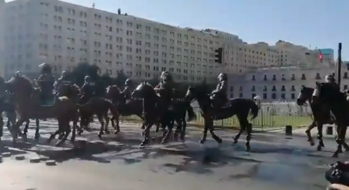 El viernes pasado hubo escaramuzas que se extendieron por horas en los alrededores del palacio de gobierno, un episodio que se repitió a partir de las 17:00 horas de este lunes. Cientos de personas levantaron barricadas incendiarias en la Alameda y las calles interiores del centro de Santiago a la vez que intentaban avanzar hacia La Moneda bajo la consigna de la renuncia de Sebastián Piñera. El despliegue policial, tal como el viernes pasado ha sido impresionante, con vehículos lanza agua y lanza gases y piquetes de carabineros premunidos de armamento antidisturbios.