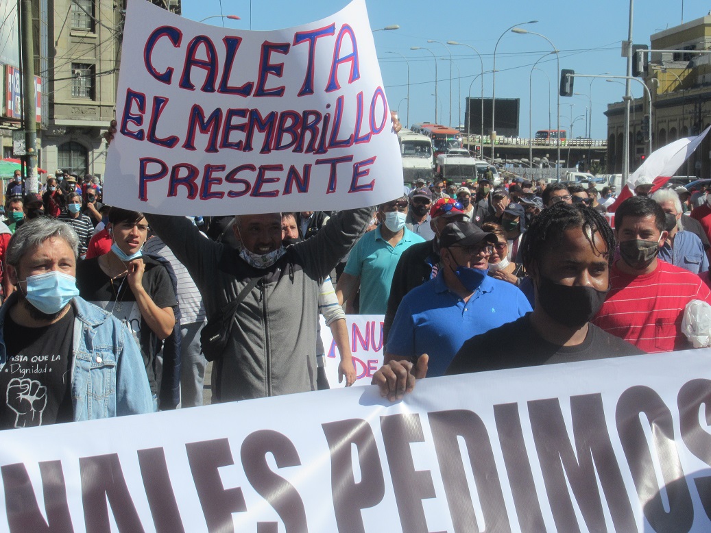 Por su parte, Luis Espinoza, un pescador de la Caleta El Membrillo, expresó:“Nosotros estamos luchando aquí varios Sindicatos de acá de Valparaíso, pescadores, para ver el asunto de la Ley de Pesca, ya que la tienen tomada la siete familias como se les llama, y nosotros estamos abandonados, por eso estamos luchando para ver si puede haber un resultado positivo para nosotros, para que se anule esa ley…”