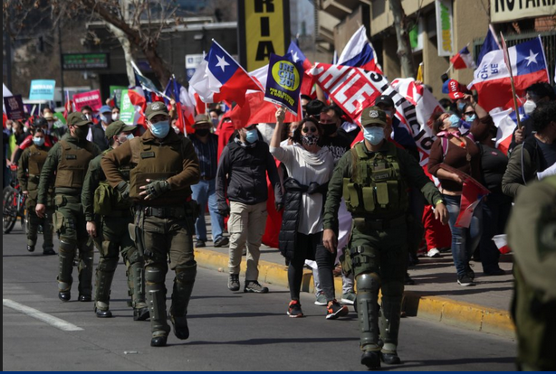 Pero también han emergido discursos y organizaciones belicosas en los barrios llamados “del rechazo”, donde, al margen de salir armados a las calles y apalear a periodistas y a cualquiera que se les cruce ante su iracunda presencia, se han atrevido ya a amenazar a fiscales que investigan hechos graves y criminales cometidos por la policía uniformada. Estos mismos grupos organizan manifestaciones por las calles de la capital y son amorosamente custodiados y protegidos por esa misma policía uniformada, derivando a una especie de connivencia constitucional y jurídicamente ilegal, por su discriminación como por sus antecedentes. Las manifestaciones del otro sector son atacadas con furor por esa policía, dejando innumerables jóvenes y mujeres mutilados, heridos y hasta asesinados. Los mismos comuneros mapuches pueden dar sobrada cuenta de esta versión que degrada al Estado y lo pone nuevamente en la mira de violador contumaz de los derechos humanos más elementales.
