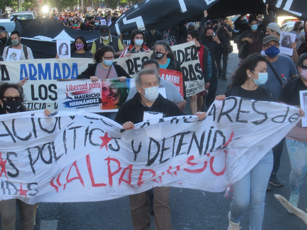 Luego de este breve acto, se inició una marcha con destino al Memorial de los Ejecutados Políticos y Detenidos Desaparecidos de la V Región, recorriendo las principales arterias del plan de Valparaíso, en la que participaron integrantes de diversas Organizaciones Sociales, de Trabajadores, de Mujeres, de Derechos Humanos y Colectivos que llevan adelante una decidida y constante lucha por la libertad de Lxs Presxs de la Revuelta y los Prisioneros Políticos Mapuche. En el Memorial, Gabriela Palleras, integrante de la AFEPDD agradeció a las y los asistentes a esta actividad, expresando: “Les agradecemos a cada uno de ustedes el habernos acompañado en esta marcha, en este día de los Derechos Humanos. Mientras tengamos fuerzas estaremos siempre en esta lucha por lo que cayeron y por los que caen hoy día…Nuestra lucha es por la Justicia y Contra la Impunidad y en ese camino seguiremos adelante…Ahora, después del estallido, muchos jóvenes están presos injustamente, por ellos tenemos que luchar para que sean liberados…”