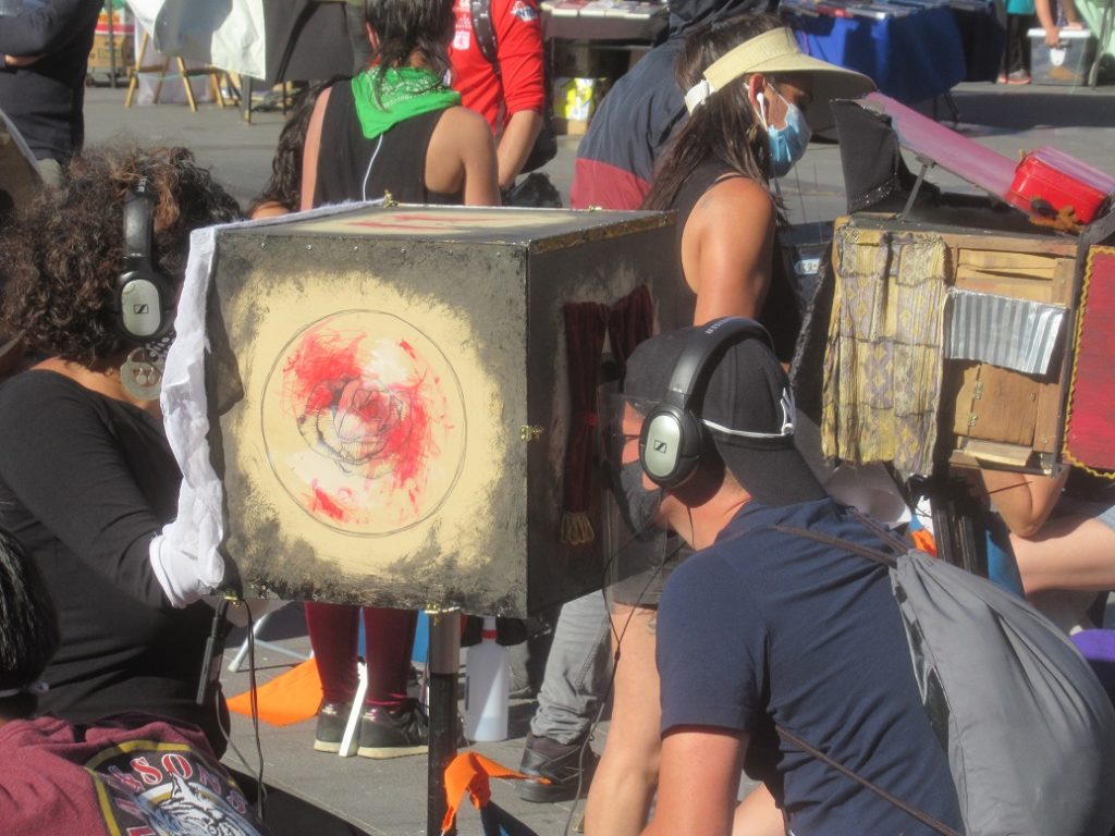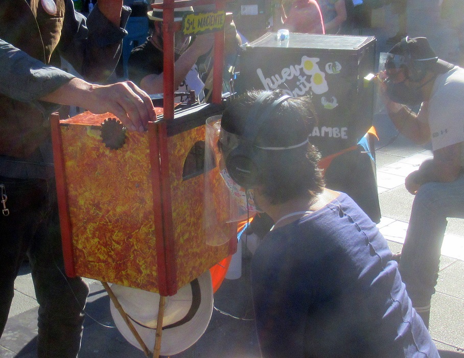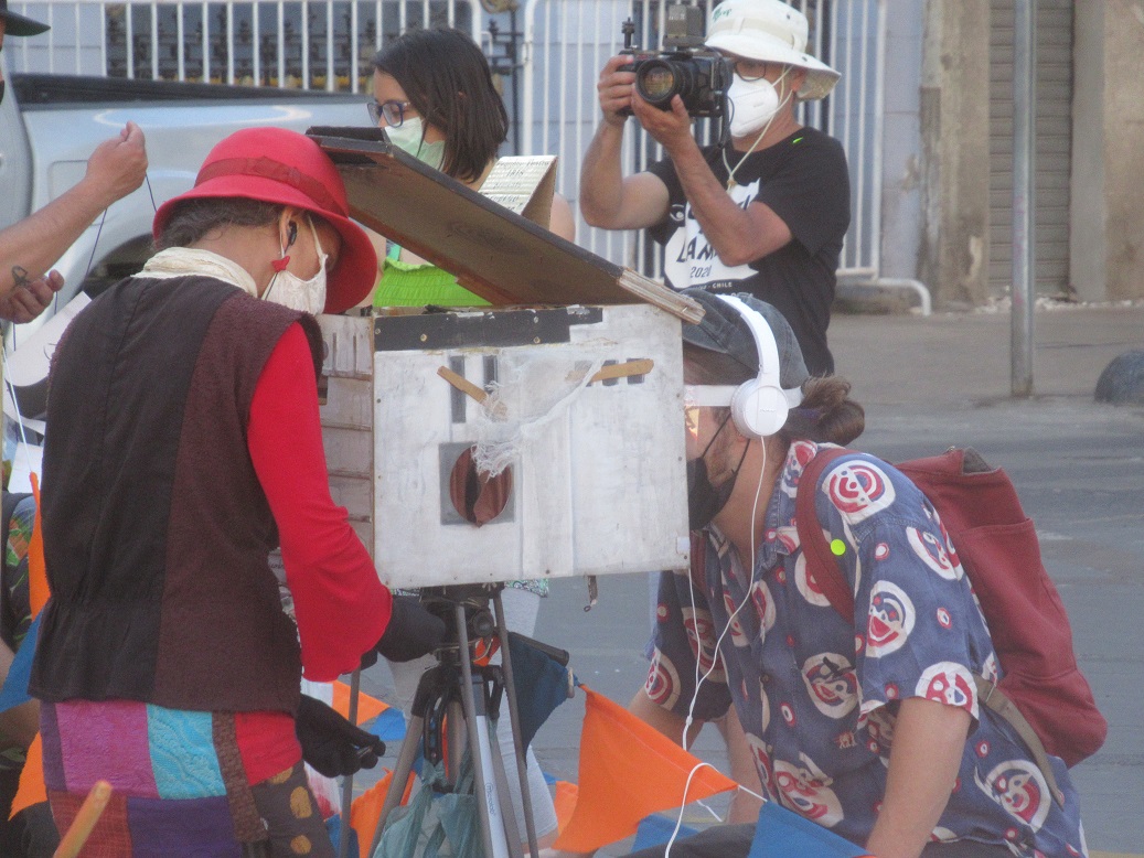Ayer sábado 12 de diciembre veinticinco pequeñas cajitas montadas sobre trípodes, como esas máquinas fotográficas de cajón antiguas, conformaban un armónico círculo ocupando el espacio urbano del sector de la Plaza Sotomayor, justo en frente del edificio del Ministerio de las Culturas y las Artes en Valparaíso, en una jornada más del Sexto Festival de Teatro Lambe Lambe (FESTILAMBE), que este año se denomina “Para Mirarnos a los Ojos”, producido y organizado por la Fundación OANI de Teatro, que es una compañía de teatro radicada en la ciudad puerto desde el año 2007 y que fue creada “con el objetivo de producir espectáculos teatrales con actores y formas animadas, combinando equipos artísticos según la índole del proyecto, renovando y experimentando lenguajes escénicos que contagien humanidad(…) dirige su trabajo en dos grandes líneas de acción: la creación, desarrollo, fortalecimiento y liderazgo en Chile del Teatro Lambe-Lambe y la investigación/creación de Teatro y Teatro de Animación de Formas en distintos formatos”, como ellos mismos explican en el folleto entregado durante esta sexta versión del festival.