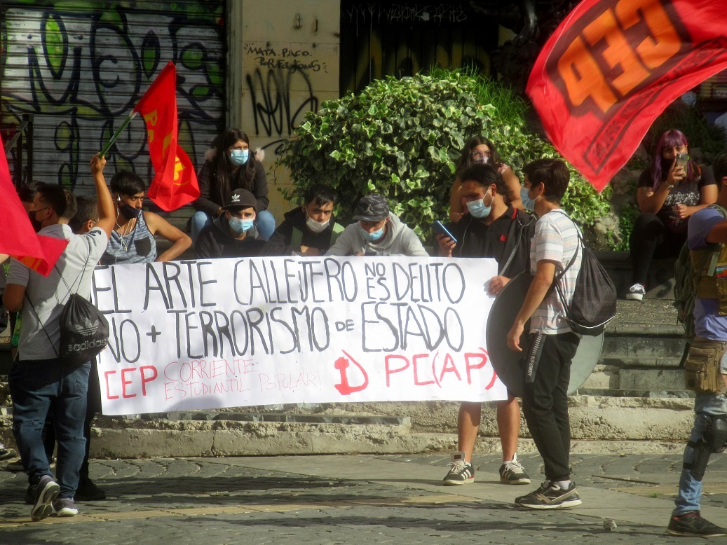 Con lienzos, pancartas y consignas las y los manifestantes se desplazaron por las calles céntricas de Valparaíso, exigiendo justicia para Francisco y manifestando que el “arte callejero no es delito”.