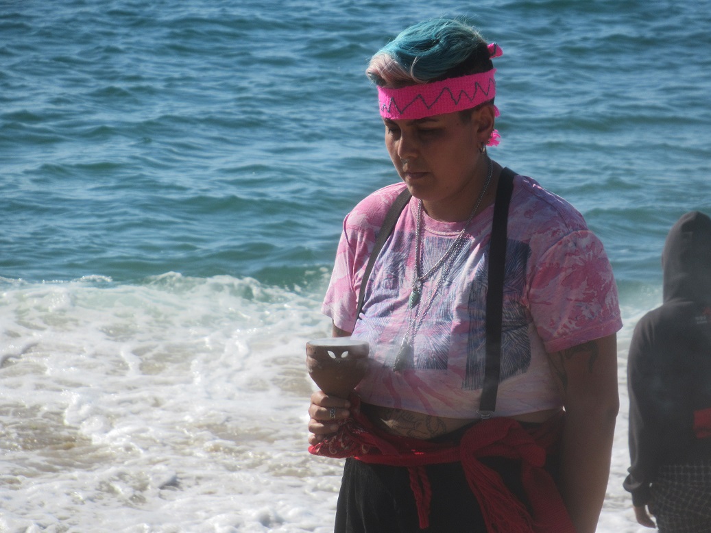 Un grupo de jóvenes y muchachas porteñas se congregaron alrededor de las 17 horas en la playa ubicada en la cercanía de la Tornamesa Barón, lugar en donde realizaron una emotiva y hermosa ceremonia, teniendo como escenario de fondo el majestuoso mar, que con su suave oleaje parecía saludar a los y las participantes en esta actividad.