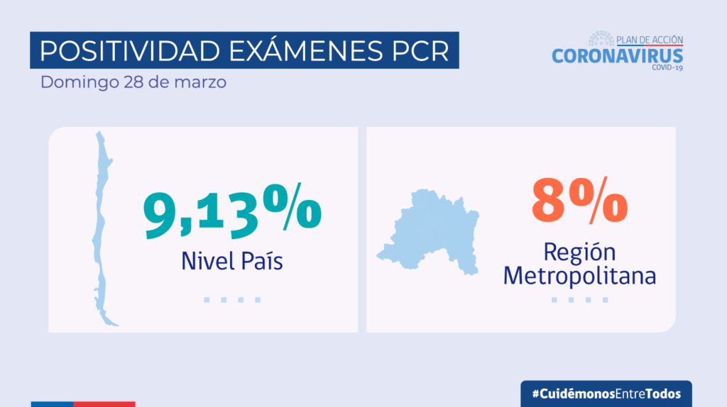 Respecto a la de Red de Laboratorios y la capacidad diagnóstica, ayer se informaron los resultados de 78.444 exámenes PCR, alcanzando a la fecha un total de 11.045.213 a nivel país. La positividad para las últimas 24 horas a nivel país es de 9,13% y en la Región Metropolitana es de 8%.