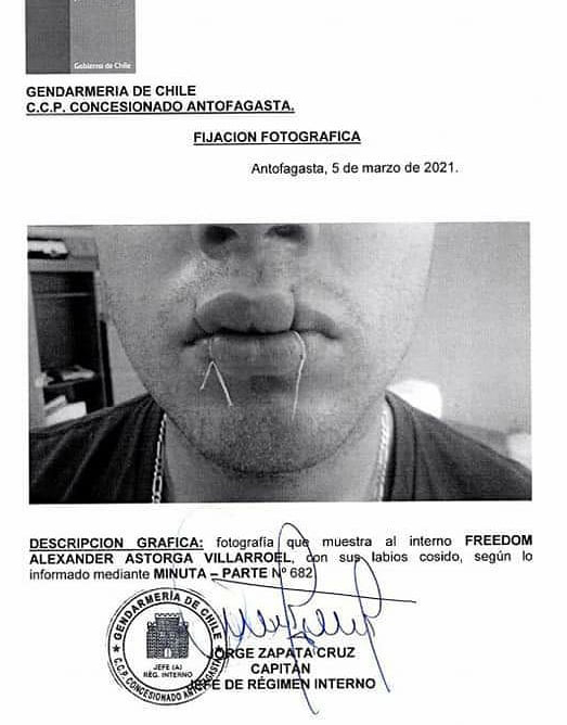 El 5 de marzo pasado Freedom ya no soportó esta injusta situación y comenzó una huelga de hambre. Freedom decidió coser su boca y entregar un escrito para iniciar su huelga de hambre en contra de lo decretado por el tribunal de Antofagasta. Este escrito fue emitido a diferentes autoridades, quienes hasta la fecha del 29 de marzo no han entregado respuesta o reacción alguna.