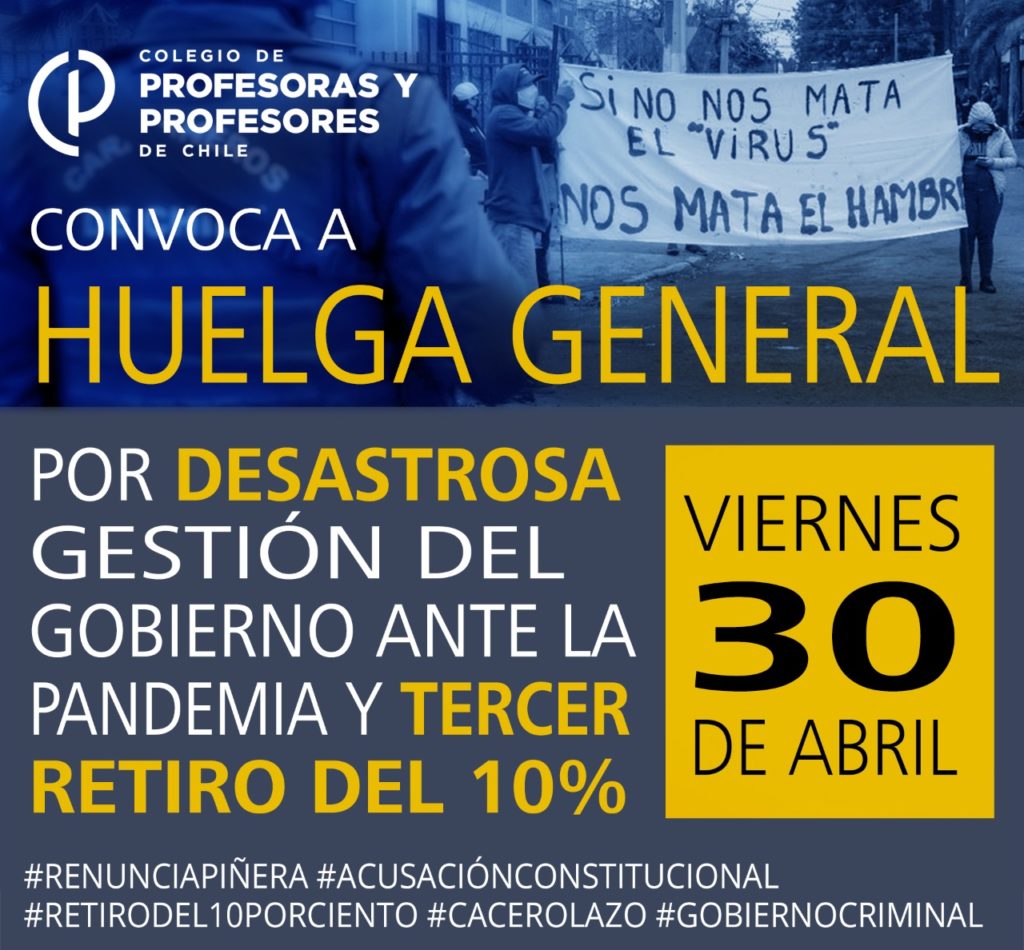 «Con el paro portuario pudimos arrebatar el 10%, pero con la unidad de toda la clase trabajadora podemos ir por mucho más y conquistar un verdadero plan de emergencia al servicio de las necesidades de la clase trabajadora y el pueblo, no de los empresarios y sus ganancias. ¡Basta de pelear divididos!», escriben. «Con un paro nacional efectivo y huelga podemos conquistar un Ingreso universal de emergencia para desempleados, trabajadores informales y dueñas de casa de $550.000».
