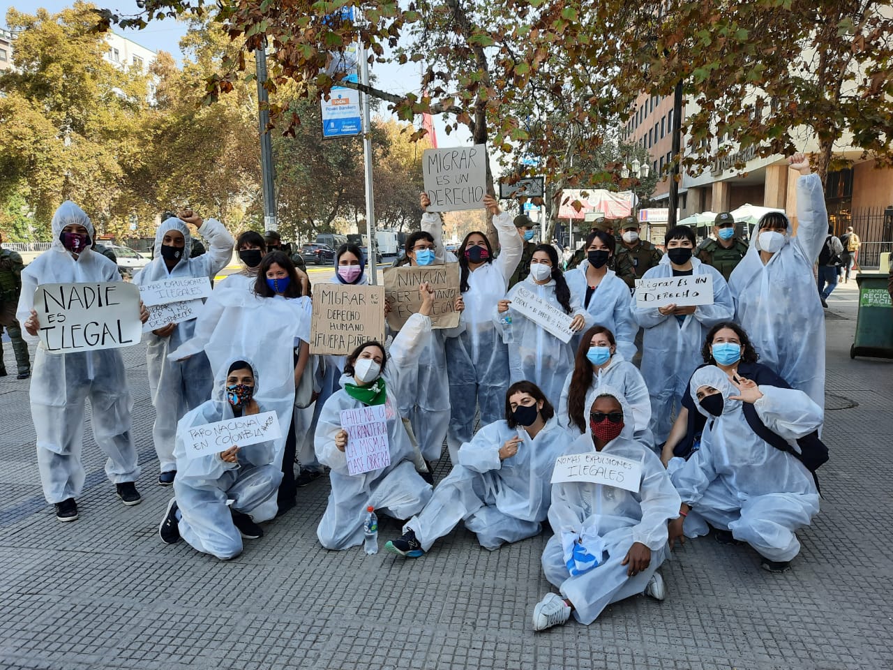 Este miércoles, en el centro de Santiago, la Brigada Laura Rodríguez de la 8 M realizó una intervención en Plaza de Armas solidarizando con las y les migrantes. La acción tuvo lugar pocos días después de una deportación masiva de migrantes venezolanos por el gobierno de Sebastián Piñera.