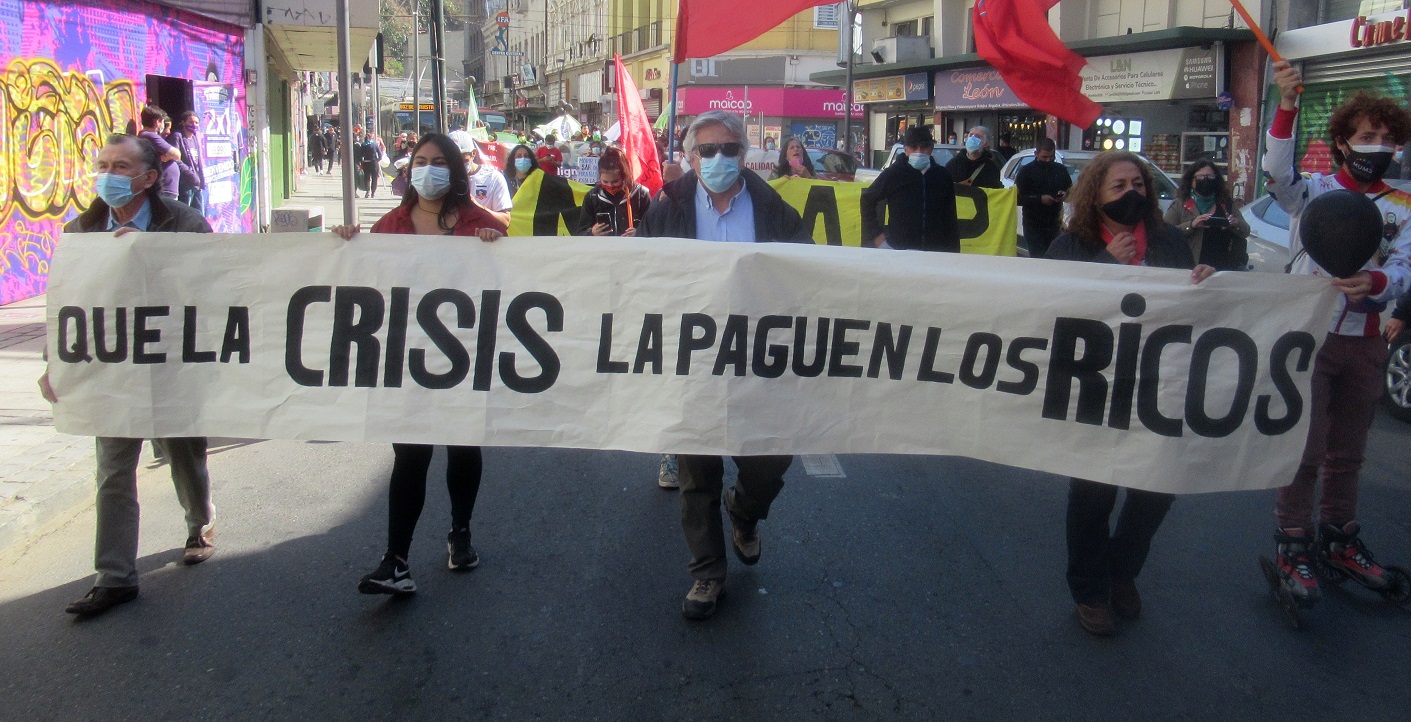 En una de los párrafos de la Carta entregada en la mañana por dirigentes de la CUT en La Moneda, dirigida a Sebastián Piñera, respecto de la convocatoria a esta huelga general expresan: “Nos manifestamos para exigir, una vez más, políticas universales ante la crisis social y económica que se recrudece cada día. Exigimos una Renta Básica de Emergencia de $500 mil, que llegue al 80% de la población; demandamos que haga uso de la atribución que tiene, por el Estado de Excepción, de congelar el precio de los alimentos; presionaremos, una y mil veces, por un salario mínimo por sobre la línea de la pobreza. Todo ello, acompañado del respaldo al proyecto de ley que establece un impuesto a los súper ricos, el royalty a la minería, entre otras medidas que den soporte y sustentabilidad económica a las demandas señaladas.”